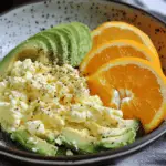 A delightful Avocado, Scrambled Eggs & Cottage Cheese Plate with Fresh Orange is the perfect way to start your day. This nutritious dish combines creamy avocado, fluffy scrambled eggs, and protein-rich cottage cheese, complemented by sweet orange slices. Ideal for breakfast or brunch, this plate is refreshing and satisfying, making it a fantastic choice for any occasion.