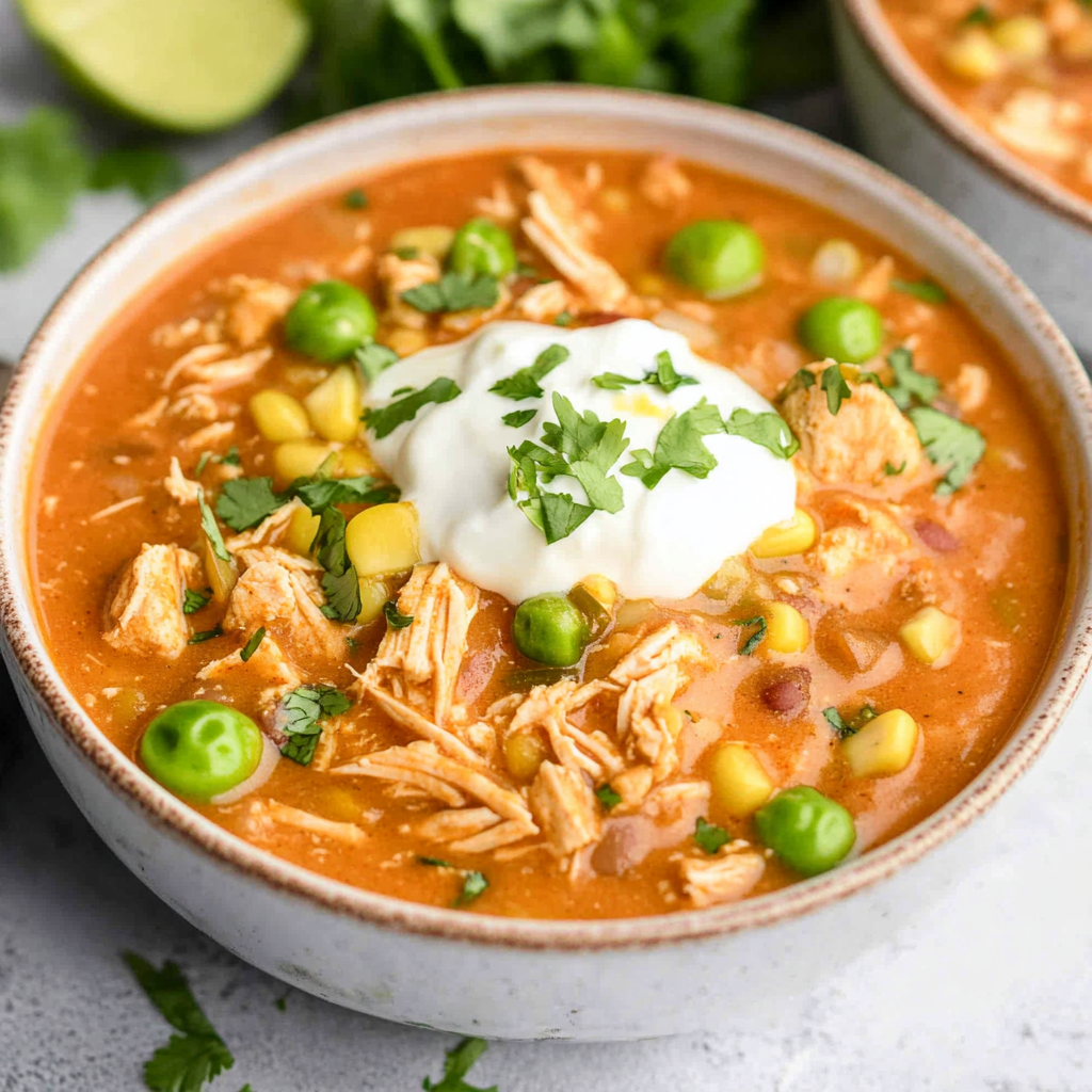 Crockpot Buffalo Chicken Chili is a flavorful one-pot meal made with shredded chicken, beans, corn, and spicy buffalo sauce, all slow-cooked together.