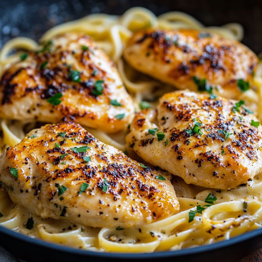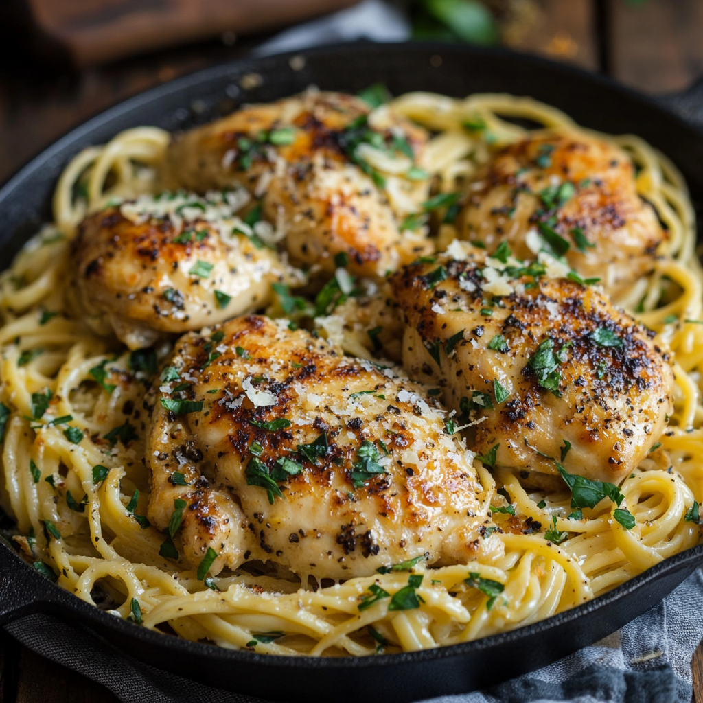 Golden Garlic Butter Chicken with Creamy Linguine