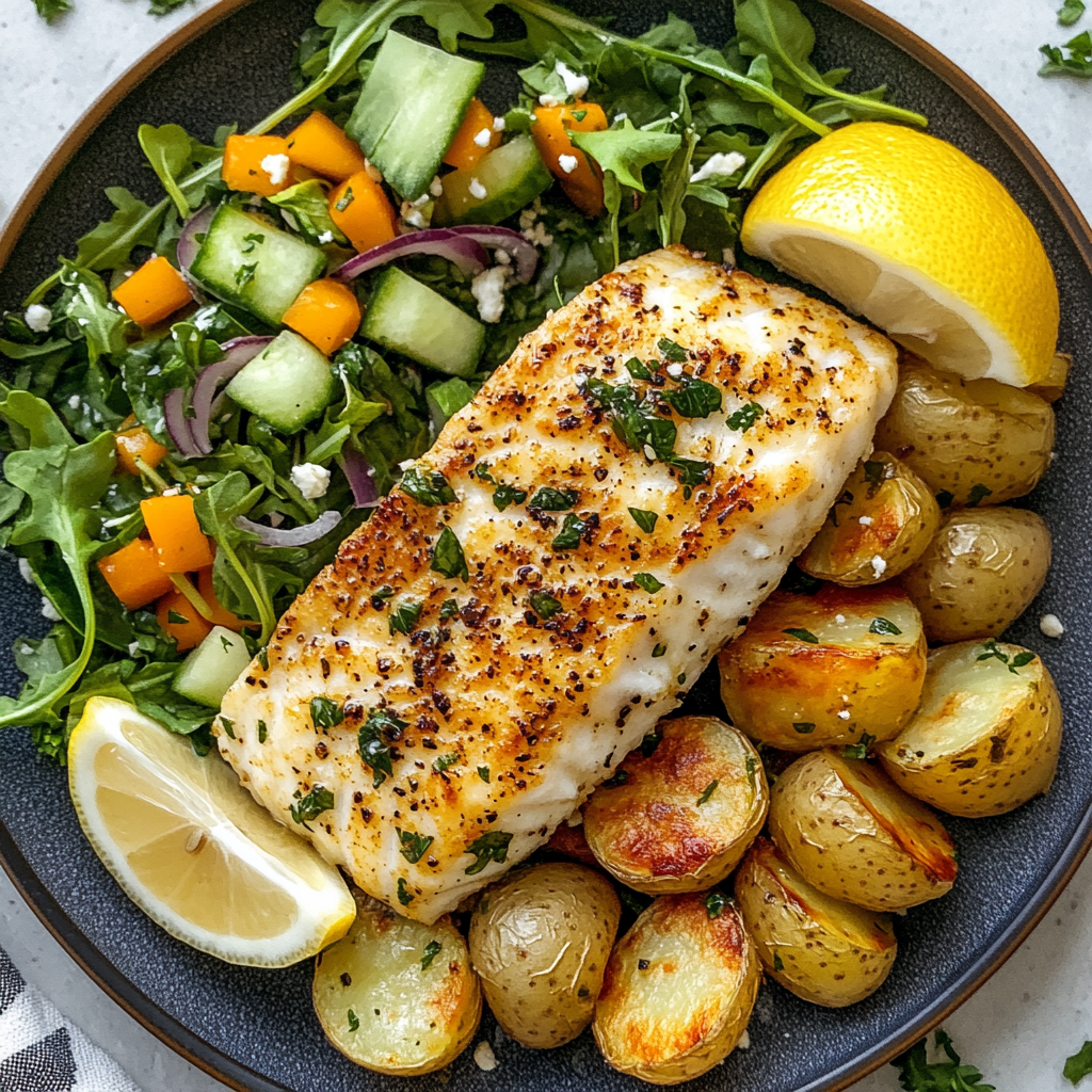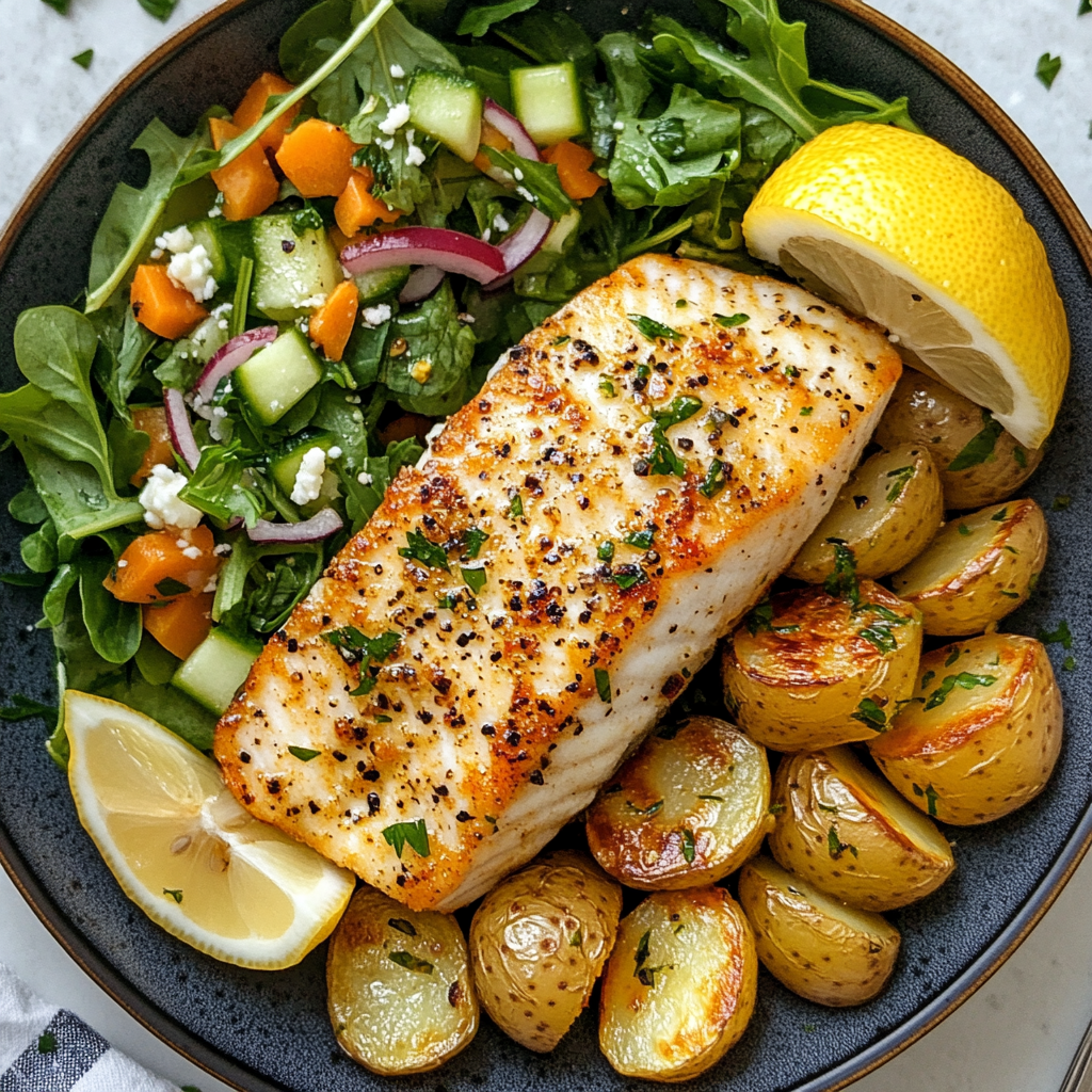 Lemon Pepper Fish with Herb Potatoes & Garden Salad is a delightful dish thatβs both light and satisfying. Its bright flavors and textures make it versatile for lunch or dinner. Feel free to customize your salad by adding other vegetables or proteins according to your taste preferences!