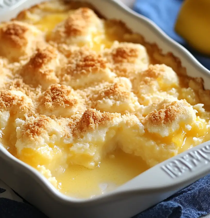Indulge in the delightful taste of Magic Lemon Cobbler: A Sweet, Tangy Dessert Delight that perfectly balances sweetness and tartness. This easy-to-make dessert features a unique β€œmagic” layer of luscious lemon filling that transforms during baking, creating a refreshing experience in every bite. Ideal for family gatherings or summer picnics, this cobbler can be served warm with whipped cream or chilled with ice cream. Its comforting flavors make it a favorite for any occasion, ensuring smiles all around!