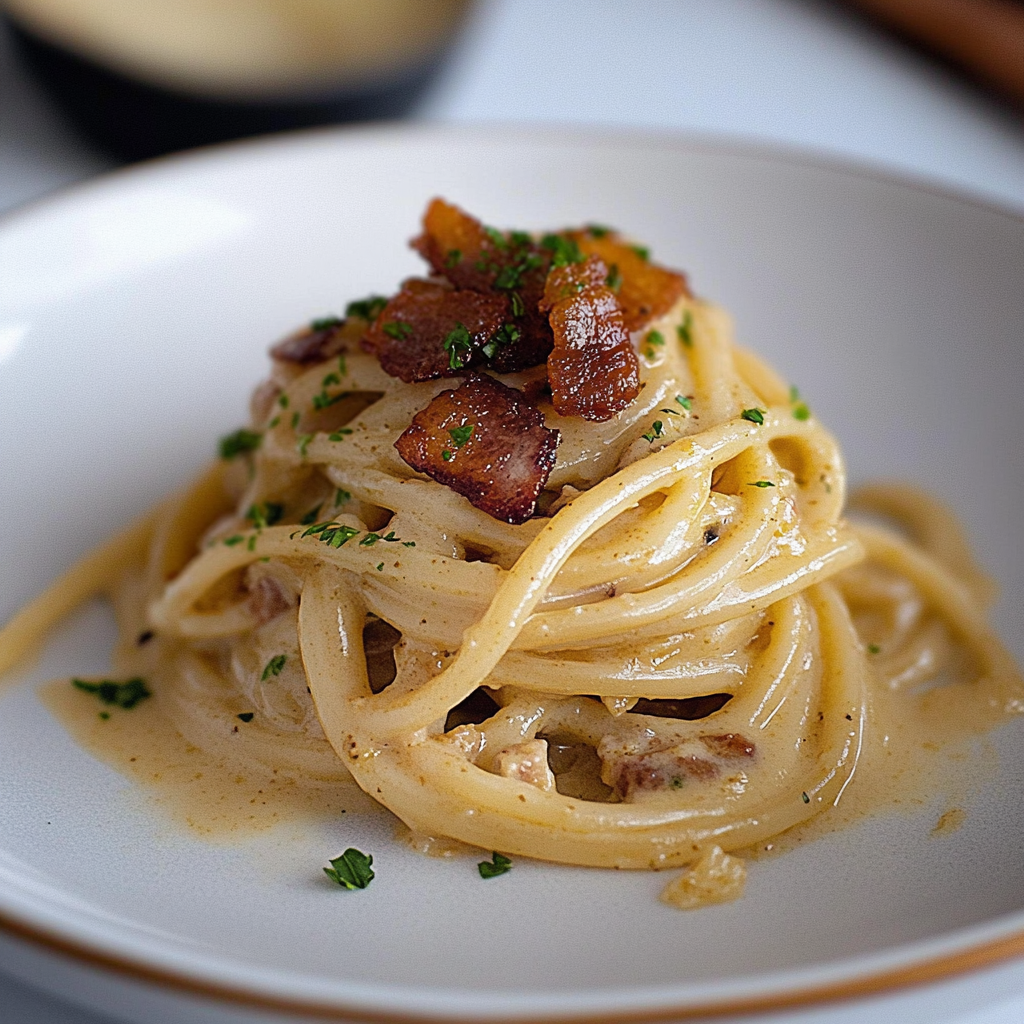 Keywords: For an even creamier sauce, you may add more reserved pasta water as needed. Feel free to include vegetables like spinach or mushrooms for added nutrition. If you prefer a vegetarian version, omit the turkey bacon or substitute it with plant-based alternatives.