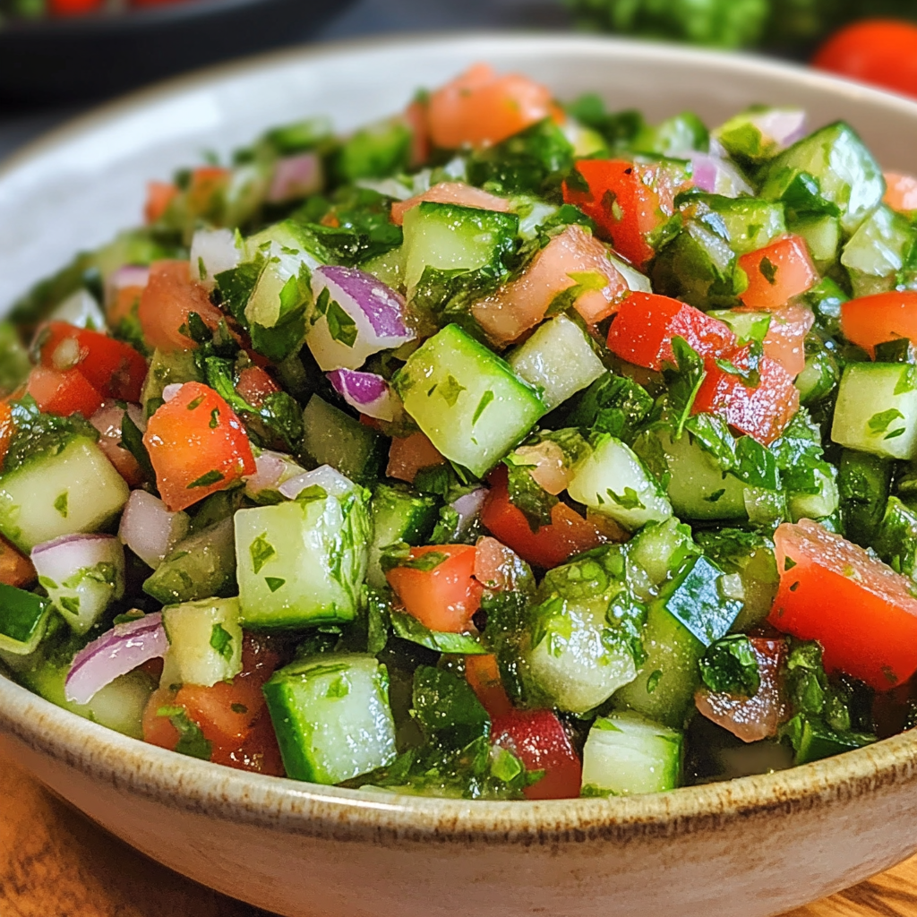 Persian Shirazi Salad is a vibrant and refreshing side dish that brings a burst of flavor to your table. This traditional Persian salad combines finely chopped cucumbers, juicy tomatoes, and aromatic red onions, all tossed in a zesty lemon dressing infused with dried mint. With its crisp textures and bright flavors, itβs an ideal accompaniment for grilled meats or enjoyed on its own as a light snack. Quick to prepare in just 15 minutes, this salad not only prioritizes fresh ingredients but also caters to health-conscious eaters looking for nutritious options. Perfect for gatherings, barbecues, or casual dinners, Persian Shirazi Salad is sure to impress.