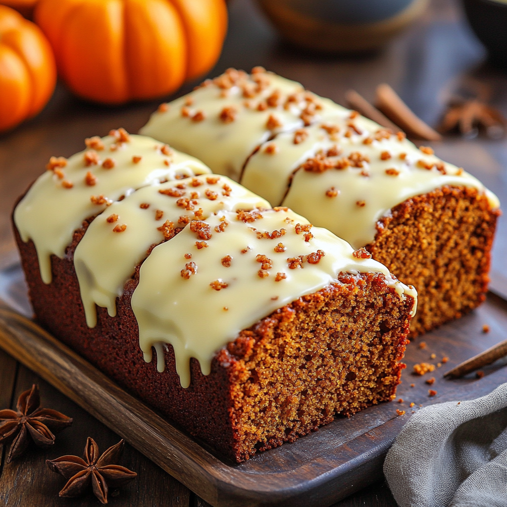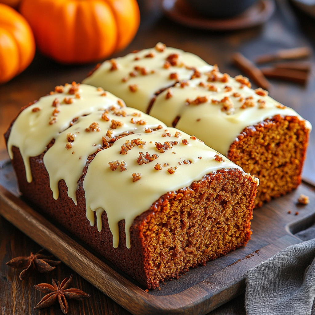 Indulge in the cozy flavors of fall with this Pumpkin Bread with Cream Cheese Frosting Recipe. This moist and spiced loaf is made with rich pumpkin puree and warm spices, creating a delightful treat perfect for breakfast, dessert, or snacking during gatherings. Topped with a creamy, tangy cream cheese frosting, this recipe is easy to make and sure to impress friends and family alike. Whether youβre enjoying it fresh out of the oven or toasted with a cup of coffee, this pumpkin bread captures the essence of autumn in every delicious slice.