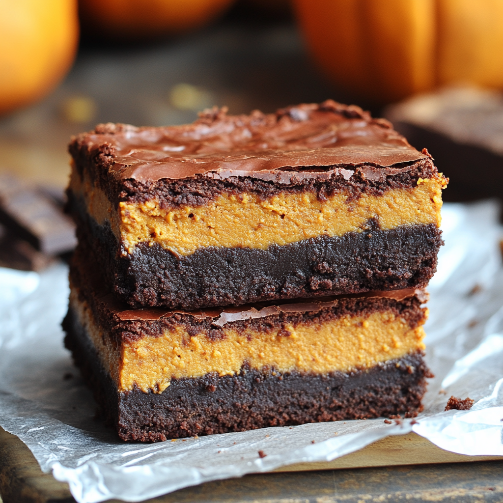 Pumpkin Brownies blend rich chocolate brownie layers with creamy pumpkin pie filling, offering a unique flavor combination that celebrates fall.