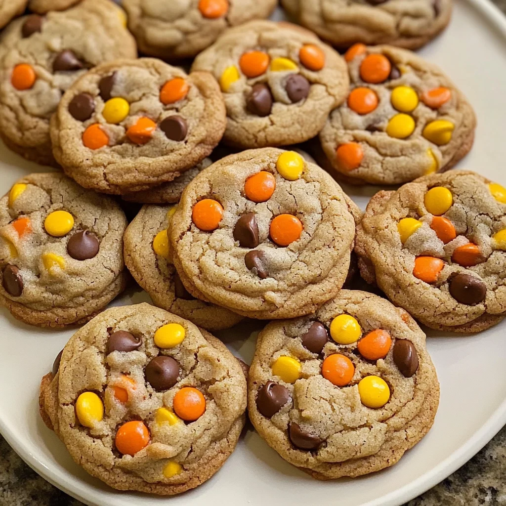 Reese’s Pieces Peanut Butter Cookies combine creamy peanut butter with sweet chocolate candies, creating a delightful flavor explosion in every bite.
