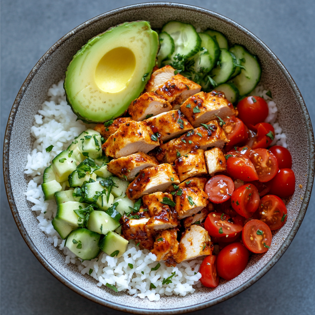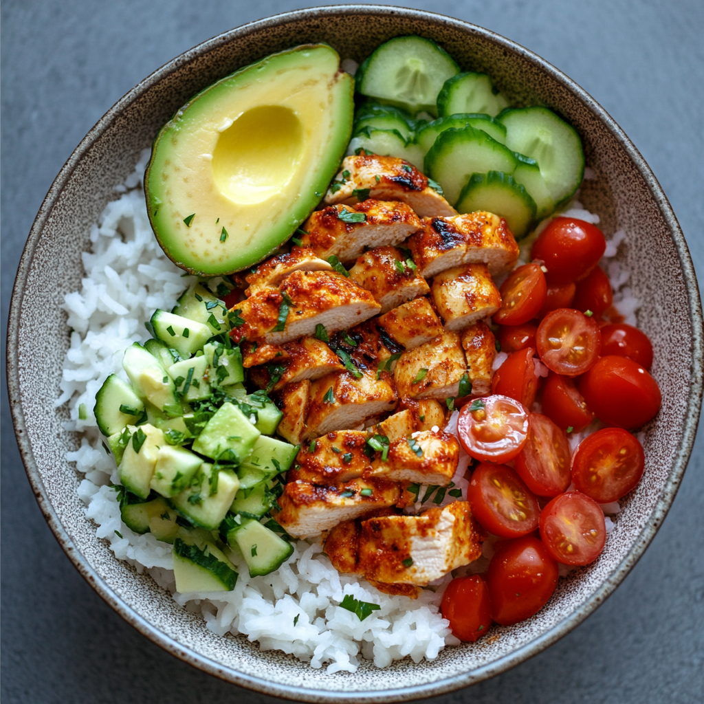 How to Perfect Spicy Chicken Rice Bowl with Avocado & Cucumber Salad