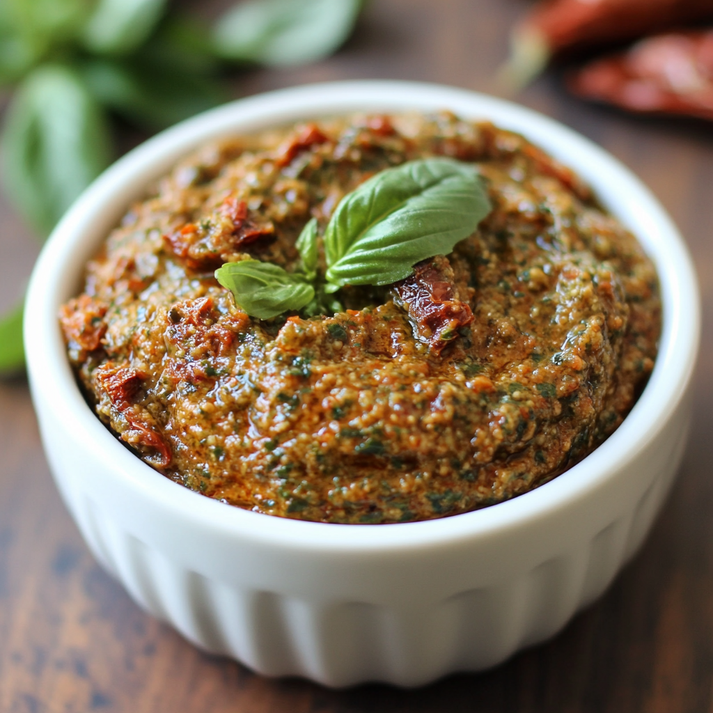 Sun-Dried Tomato and Basil Pesto is a vibrant and flavorful sauce that elevates any dish. This versatile pesto serves as a delicious dip, pasta sauce, or spread, making it perfect for gatherings or a quick weeknight dinner. With its rich taste from sun-dried tomatoes and fresh basil, this recipe captures the essence of Italian cuisine while being incredibly easy to prepare.
