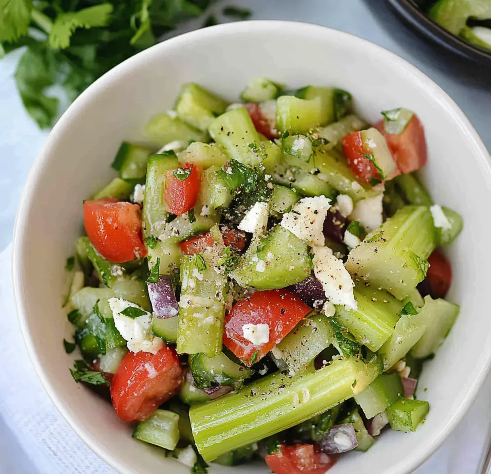 Thanksgiving Celery and Walnut Salad is a vibrant and refreshing dish that perfectly complements the rich flavors of your holiday feast. This crunchy salad features crisp celery, nutty walnuts, and sweet dried cranberries, creating a delightful balance of textures and tastes. Quick to prepare in just 10 minutes, it’s an ideal choice for any occasionβ€”from festive gatherings to casual meals. Customizable with various nuts or fruits, this healthy option is packed with nutrients while remaining low in calories. Serve it as a standout side dish at your holiday table, and watch it become a favorite among guests.